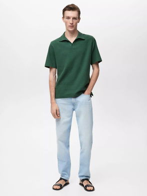 Matejo Cotton Regular Fit Geo Open Neck Polo Shirt, Green