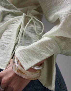 Tie Side Wrap Round Shirt In Sage