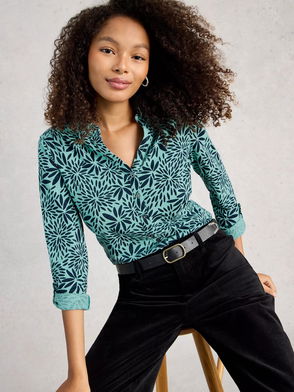 Annie Geometric Jersey Shirt, Teal