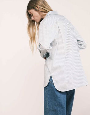 Jeans Embroidery Logo Shirt In Sage Stripe