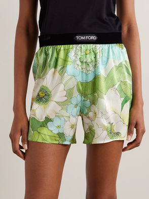 Velvet-trimmed Floral-print Silk-blend Satin Shorts