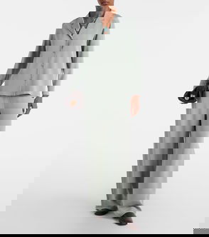 Petite Wide-Leg Pleated Trousers In Khaki Green