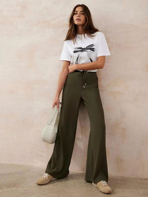 Graphic Stripe Wide Leg Trousers, Dark Green