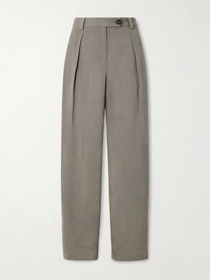 Pleated Grain De Poudre Wide-Leg Pants