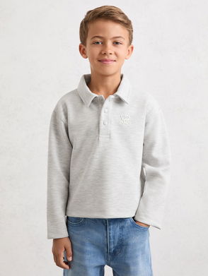 9-13 Yrs Monogram Embroidered Polo Shirt In Soft Grey Melange