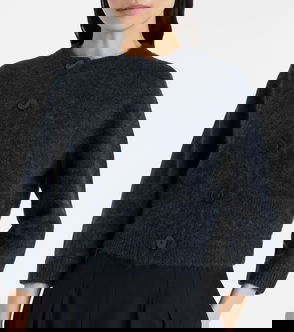 Rhinestone-Collar Slim-Fit Wool Cardigan