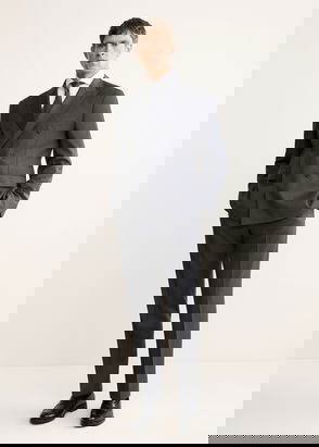 Wool Double-Breasted Check Suit Blazer Tailored-Fit In Charcoal Grey