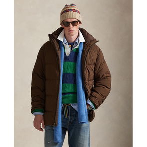 Logo-Plaque Hooded Wool Shell-Down Jacket
