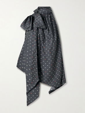 Scarf-Detailed Printed Silk-Jacquard Blouse