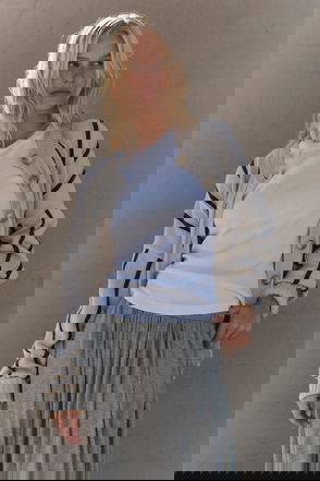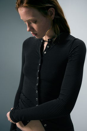 Jersey Second Skin Long Sleeve Top In Grey Stripe
