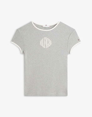 Gold-tone Button Logo Embroidery Relaxed T-shirt In Dark Grey