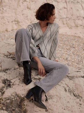V-Neck Argyle Cardigan, Grey/Multi
