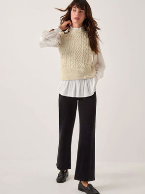 Evie Collared Wool Blend Cable Knit Jumper, Cloud