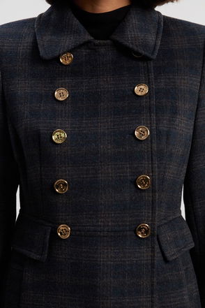 Wool Button Front Check Double Breasted Tailored Princess Coat