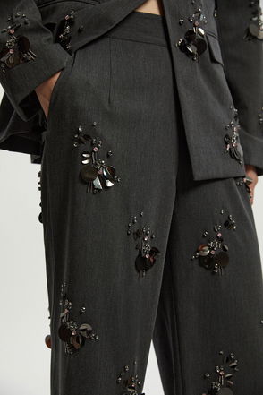 Petite Cluster Sequin & Crystal Embellished Tailored Wide Leg Trouser