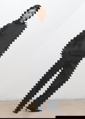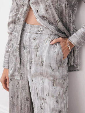 Womens Double Jersey Pleated Trousers—Grey Marl
