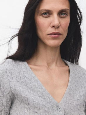 Womens Double Jersey Cropped Zip Up Hoodie—Grey Marl