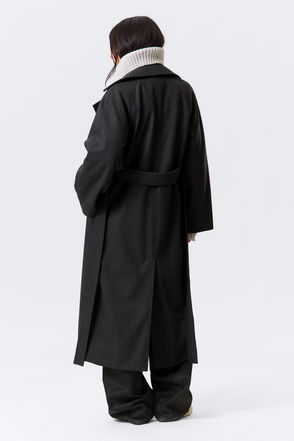 Funnel Neck Wool Rich Wrap Coat, Charcoal