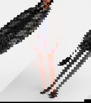 Abercrombie & Fitch Herringbone Wool Look Bubble Hem Bomber Jacket In Grey