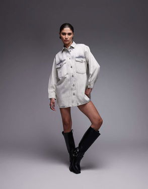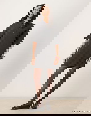 Cotton And Wool Mix Knitted Polo Mini Dress In Charcoal