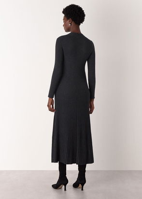 Dark Grey V Neck Cable Ribbed Knit Dress