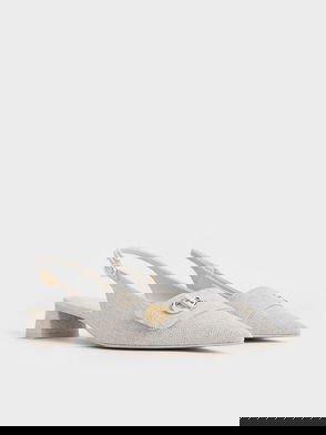 VLogo 40 Pointed-Toe Leather Slingback Courts