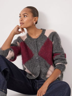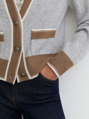 Wool-Cashmere Tipped Cardigan In Grey/Neutral