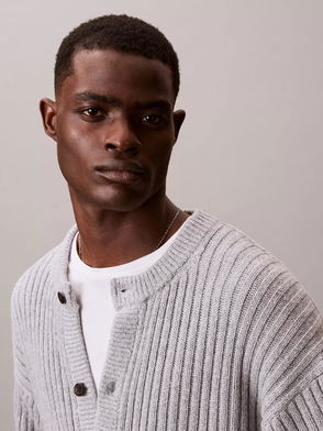 Chunky Cotton Blend With Wool Cardigan, Heroic Grey Heather