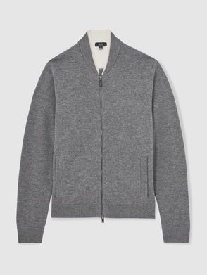 Merino-Wool Zipped Bomber Cardigan In Mid Grey