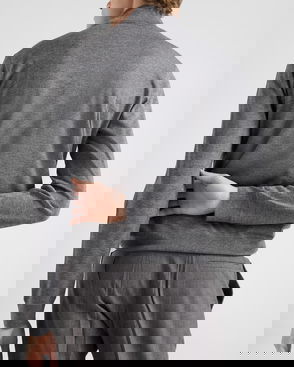 Shirt Collar Fine Knit Sweater, Medium Grey