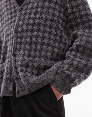 Mode Merino Wool Open Knit Logo Cardigan In Charcoal Grey
