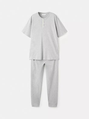 Organic Cotton Brushed Check Pyjama Set, Grey Charcoal