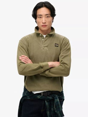 Cotton Contrast Stitch Rugby Shirt, Washed Grey