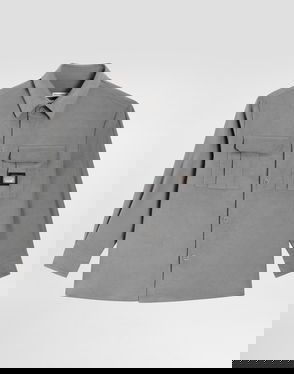 3-9 Yrs Wool-Blend Detachable-Hood Overshirt In Charcoal