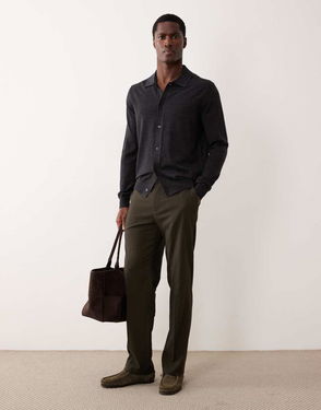 Wool Polo Shirt In Charcoal