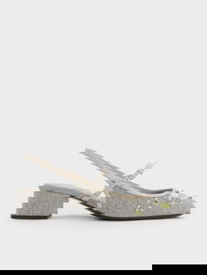 Sling Back Cross Strap Heel In Grey