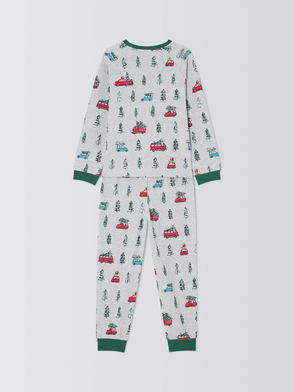 Kids' Christmas Trees & Cars Pyjamas, Grey Marl
