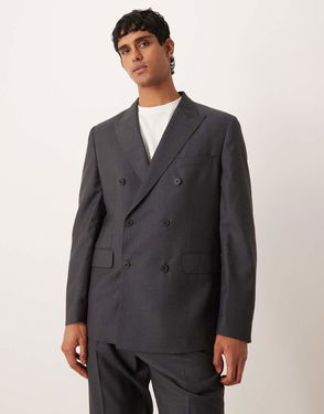 Siena Premium 100% Wool Double Breasted Suite Blazer In Charcoal
