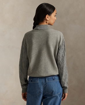 Cable-Sleeve Fleece Mockneck