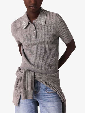 Rhinestone-Embellished Short-Sleeve Wool Polo