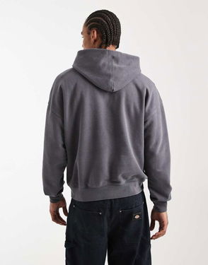 Two Horse Logo Boxy Hoodie In Dark Grey