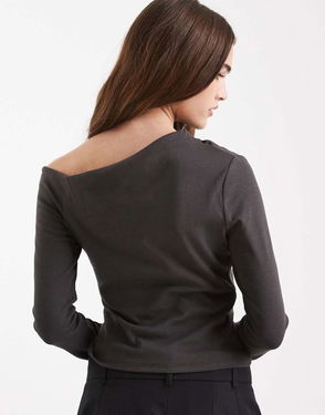 Jersey Second Skin Long Sleeve Top In Grey Stripe