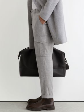 Wool-Blend Flannel Pinstripe Cargo Trousers In Soft Grey
