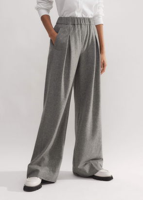 Juno Pleated Wool-Blend Flannel Wide-Leg Pants