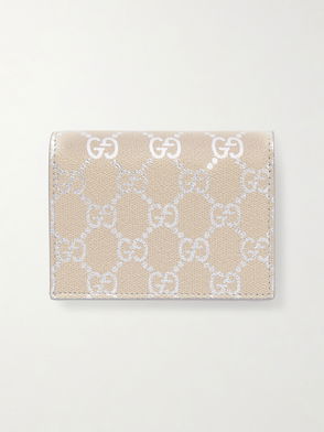 GG Emblem Small Metallic-trimmed Printed Textured-leather Wallet