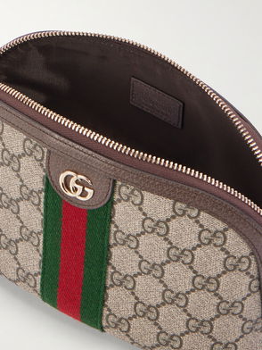 Ophidia Webbing And Leather-trimmed Coated Canvas Cosmetics Case