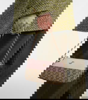 Ophidia Mini Webbing-trimmed Textured-leather And Printed Coated-canvas Shoulder Bag