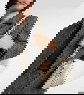 Horsebit-detailed Leather-trimmed Debossed Suede Shoulder Bag