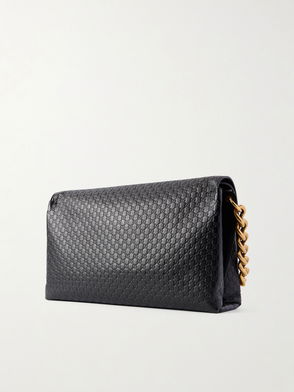 Horsebit-detailed Leather-trimmed Debossed Suede Shoulder Bag
