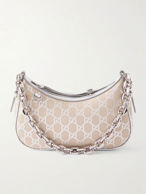 Ophidia Leather-Trimmed Canvas-Jacquard Shoulder Bag